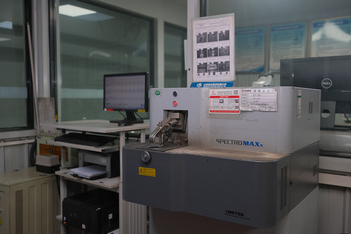 為滿足不同鑄鐵的檢測(cè)需求,鑄造靜壓線配備先進(jìn)的檢測(cè)設(shè)備和試驗(yàn)儀器,包括獨(dú)立的鑄鐵材料檢測(cè)實(shí)驗(yàn)室、直讀光譜分析儀、鹽霧試驗(yàn)機(jī)、電液式伺服萬(wàn)能試驗(yàn)機(jī)、硬度機(jī)、金相顯微鏡等。中頻電爐帶有流量監(jiān)控系統(tǒng),可以智能監(jiān)控爐體冷卻狀況。配置余熱回收裝置,用于冬天車間供暖。
